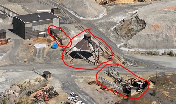 Satelliittipiirissä on käsitelty malmia, joka on kuljetettu Pyhäsalmen kaivokselle rikastettavaksi ns. satelliittikaivoksilta (Kangasjärvi, Ruostesuo ja Mullikkoräme). Satelliittipiiristä puretaan murska, kuljetinsillat ja hihnatunneli. Alla olevaan kuvaan on merkitty satellittipiirin purettavat osat.